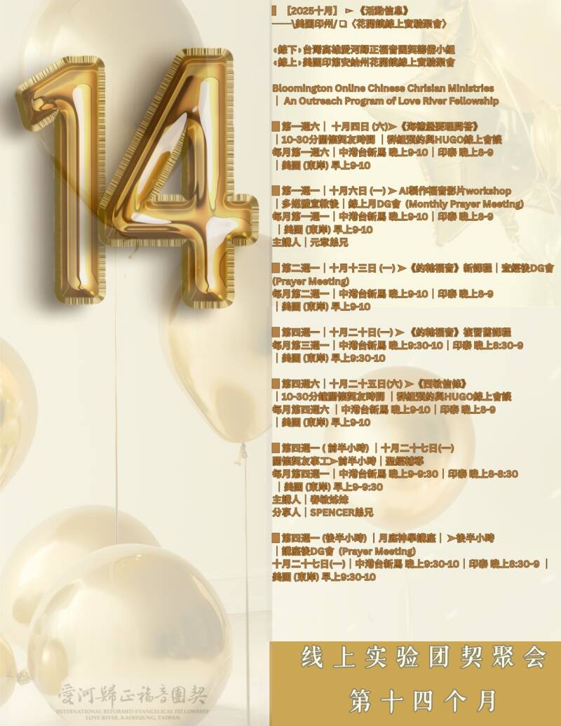 ▍ |The Bloomington Online Experimentation Gathering is a faith-driven initiative committed to creating meaningful online spaces for spiritual growth and community building among international Chinese-speaking believers. Established in September 2024, our group comprises 20-30 members from various countries, including the United States, Taiwan, China, Singapore, and Indonesia. We regularly meet online to study the Gospel of John and are preparing to delve into the Westminster Confessions.
